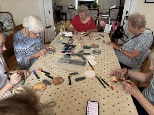 Back at the homes, creativity took centre stage with a shell and stone art and craft session, where residents painted and decorated seaside treasures with bright colours and patterns. These simple, tactile activities often spark conversation and shared memories, making them both relaxing and meaningful.